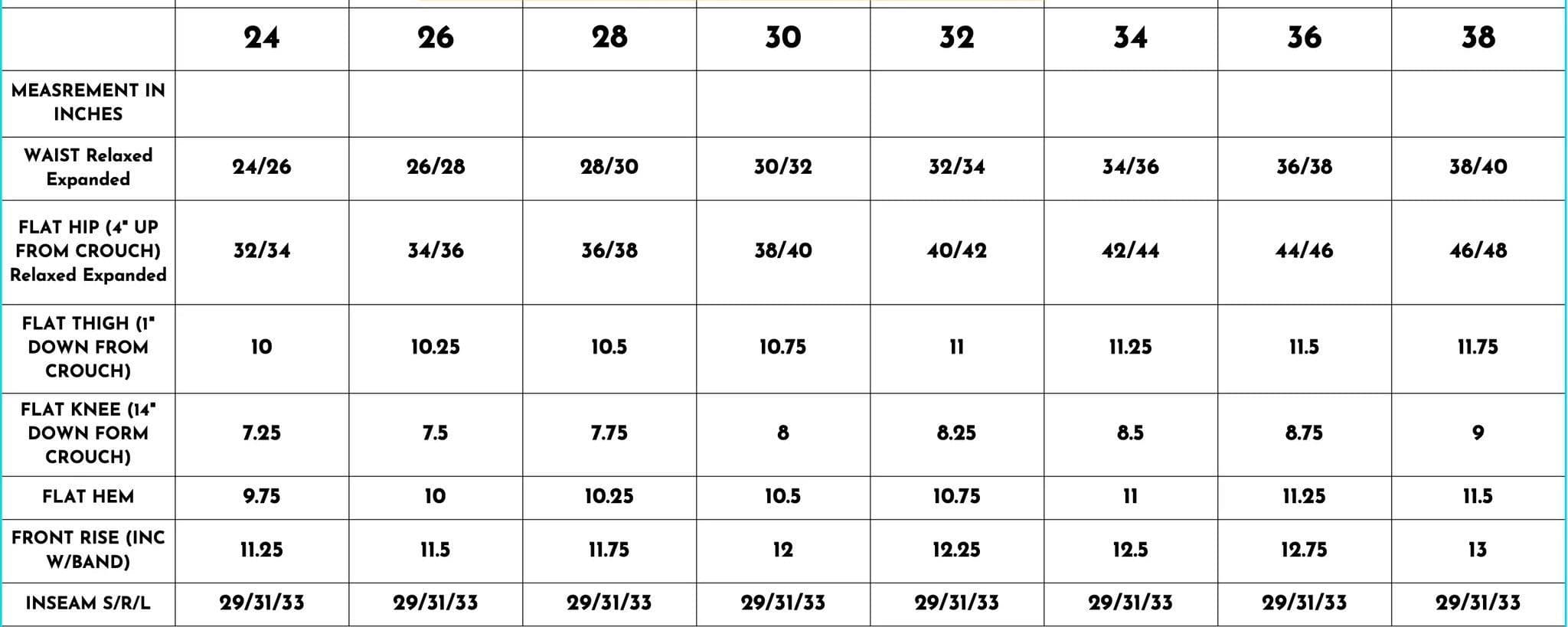 - Our sizes are listed with the waist size first, followed by the inside leg measurement. Both in inches.